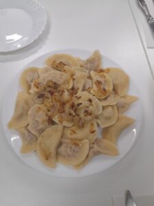 16. 12. 2025 smo imeli zelo zanimivo delavnico ukrainkse kuhinje, na kateri nas je kuharska mojstrica Natalia učila pripravljati ukrainske varenike z mesom, krompirjem in višnjami. Vse tri vrste varenikov so bile zelo okusne.