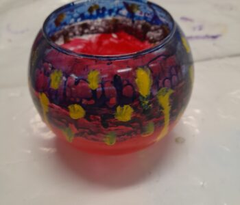Na ustvarjalni delavnici 16. 12. 2025 so otroci z barvami za steklo poslikavali steklene posodice za čajno svečko. Čeprav so posodice vse enake, so bile na koncu delavnice vse popolnoma različne, unikatne in zanimive.