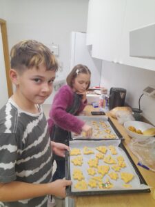 Na kuharski delavnici 11. 12. 2025 smo skuhali joto s kranjskimi klobasami, spekli pa smo tudi domač kruh, ki se je zelo prilegel zraven te dišeče jedi na žlico.