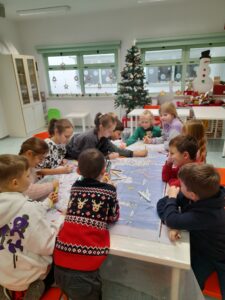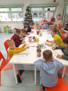 Na prvem dnevu novoletnih počitniških delavnic, 29. 12. 2025, so otroci barvali ogromno pobarvanko, se igrali na prijetnem soncu na igrišču, nato pa po kosilu ustvarjali smučarja snežaka in novoletno jelko z okraski. Ob igri in ustvarjanju je dan hitro minil, počitnice pa so tako veliko bolj zanimive, kot če bi bili samo doma pred televizijo.
