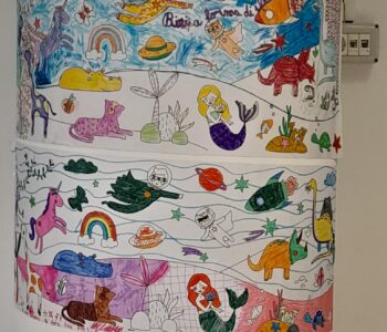 Še zadnji dan novoletnih počitniških delavnic se počasi izteka. Ker so bile temperature danes prenizke, smo ostali na toplem in se zabavali, barvali, igrali smo se zanimivo igro na izpadanje s stoli, nato pa si pogledali še lep risani film in zraven uživali ob kokicah.