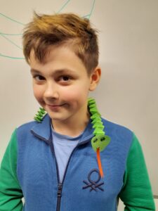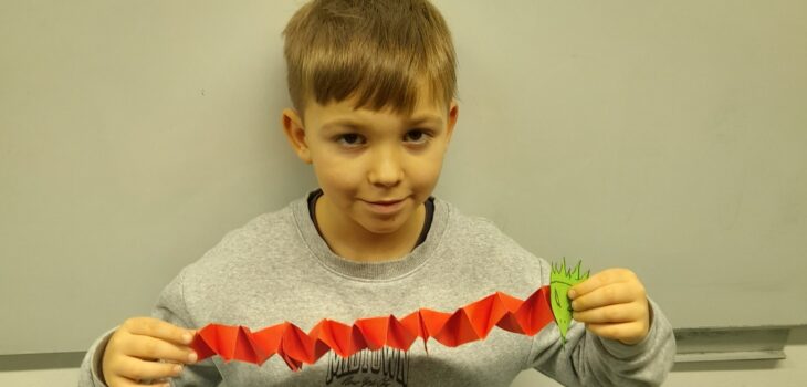 Take simpatične kače iz papirja so 6. 1. 2026 na ustvarjalni delavnici izdelovali otroci.
