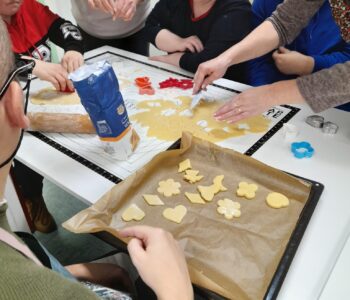 13. 1. 2026, so nas prvič v tem letu obiskali uporabniki iz Sožitja. Skupaj smo pripravili masleno testo za piškote, z modelčki izrezovali različne oblike piškotov, jih spekli in se z njimi sladkali. Zabavno popoldne, kjer smo urili veščine izdelave piškotov, se družili in nekaj sladkega pojedli.