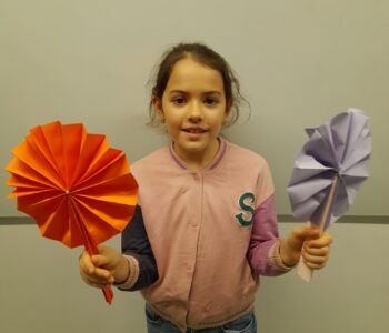 Na ustvarjalni delavnici 13. 3. 2026 so otroci iz papirja izdelovali pisane pahljače.