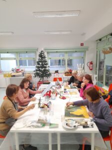 Letos imamo neverjetno plodovito ustvarjalno leto, saj imamo kar 4 različne likovne skupine za odrasle ter likovno in ustvarjalno delavnico za otroke ter delavnico kvačkanja za otroke. Tele čudovite izdelke so na zadnjem srečanju, 10. 12. 2025, ustvarjale umetnice skupine ARTiha, ki pod mentorstvom Tatjane Haber z akrilnimi barvami ustvarja vsako sredo od 9. ure dalje. Če ste umetniška duša, se nam pridružite tudi vi!