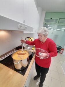 Na kuharski delavnici 11. 12. 2025 smo skuhali joto s kranjskimi klobasami, spekli pa smo tudi domač kruh, ki se je zelo prilegel zraven te dišeče jedi na žlico.