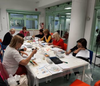 Skupina Čopinel pod mentorstvom Vanje Čibej, ki ustvarja v akvarelni tehniki, je 2. 3. 2026 ustvarjala portrete in rože.