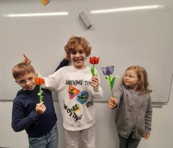 Na ustvarjalni delavnici 3. 3. 2026 so otroci iz plastičnih slamic in papirja ustvarjali tulipane, ki jih bodo za 8. marec podarili svojim mamicam.