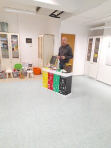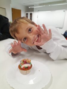 28. 10. 2025 – Drugi dan počitniškega varstva nas je obiskal poseben gost iz podjetja Marjetica Koper, ki nam je na zabaven način predstavil pomen ločevanja odpadkov in nas naučil, kako jih pravilno razvrščamo. Po poučnem delu je sledila delavnica presenečenja, kjer smo pripravili zeleno in rdečo kremo za muffine ter muffine okrasili s kremo in strašljivimi Halloween simboli in seveda – vse skupaj tudi z užitkom pojedli! Da pa dan ne bi bil le kulinaričen, smo imeli tudi otroško jogo, kjer smo se raztezali, umirili in sprostili telo in misli.