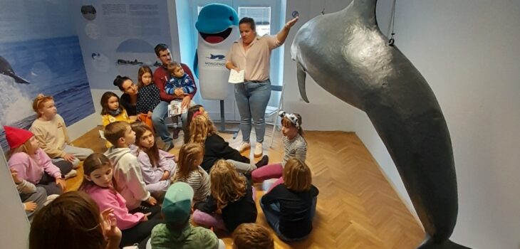 Prijazne sodelavke iz Društva Morigenos so nam predstavile evolucijski razvoj delfinov, njihove značilnosti in številne zanimivosti o teh čudovitih morskih sesalcih.