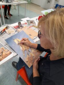 10. 10. 2025 – Naše umetnice na likovni delavnici Ustvarjanje skozi barve, pod mentorstvom Ljuba Parovela, že ustvarjajo nove umetnine. Likovna delavnica Ustvarjanje skozi barve je vsak petek ob 9. uri. Vabljeni, da se nam pridružite