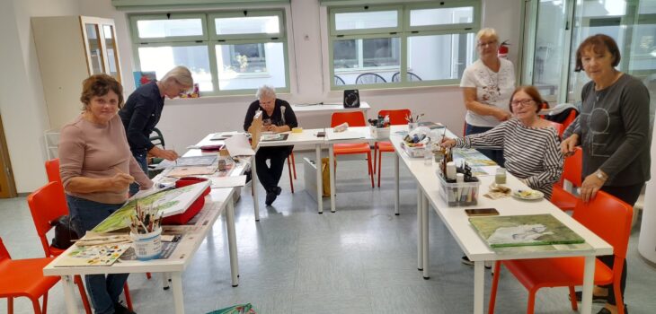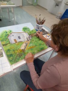 10. 10. 2025 – Naše umetnice na likovni delavnici Ustvarjanje skozi barve, pod mentorstvom Ljuba Parovela, že ustvarjajo nove umetnine. Likovna delavnica Ustvarjanje skozi barve je vsak petek ob 9. uri. Vabljeni, da se nam pridružite