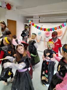 13. 2. 2026 – Jutri je pustna sobota, zato je bila naša kuharska delavnica tudi nekoliko pustno obarvana. delali smo miške ali po domače fritole. Za glavno jed pa smo naredili krompir in zelenjavo s sirom zapečeno v pečici.