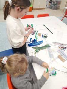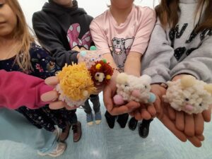Kljub slabšemu vremenu je bil današnji dan počitniških delavnih poln zanimivih aktivnosti. Zjutraj smo kvačkali in delali zapestnice iz okrasnih kamenčkov. Nato smo igrali namizni tenis, se razgibavali in se igrali družabne igre, zatem pa se je pokazalo celo nekaj sončnih žarkov in smo se lahko odpravili celo na krajši sprehod. Ko smo se vrnili v naš center so otroci sami pripravili vsak svojo pico, ki so jo z užitkom pojedli. Popoldan pa smo izdelovali še zmaje iz papirja in živalice iz volne.