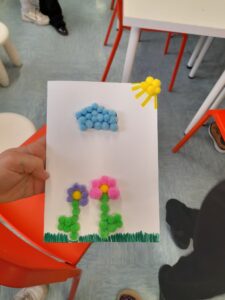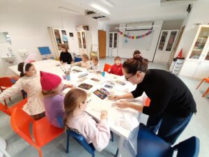 Kljub slabšemu vremenu je bil današnji dan počitniških delavnih poln zanimivih aktivnosti. Zjutraj smo kvačkali in delali zapestnice iz okrasnih kamenčkov. Nato smo igrali namizni tenis, se razgibavali in se igrali družabne igre, zatem pa se je pokazalo celo nekaj sončnih žarkov in smo se lahko odpravili celo na krajši sprehod. Ko smo se vrnili v naš center so otroci sami pripravili vsak svojo pico, ki so jo z užitkom pojedli. Popoldan pa smo izdelovali še zmaje iz papirja in živalice iz volne.