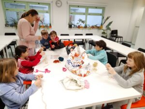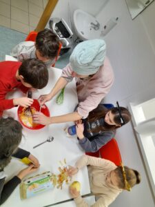 13. 2. 2026 – Jutri je pustna sobota, zato je bila naša kuharska delavnica tudi nekoliko pustno obarvana. delali smo miške ali po domače fritole. Za glavno jed pa smo naredili krompir in zelenjavo s sirom zapečeno v pečici.