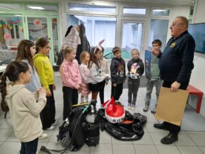 20.2. 2026 smo dan začeli s prav posebno delavnico – obiskal nas je inštruktor potapljanja iz društva PLK Koper in nam pokazal potapljaško opremo, povedal veliko zanimivega o potapljanju, pokazal podvodne fotografije morskih živali in predstavil življenje v morju. Tudi danes smo telovadili in se igrali različne družabne igre. Popoldan pa smo spekli kokice in si ogledali celovečerni risani film.