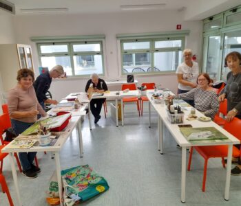 10. 10. 2025 – Naše umetnice na likovni delavnici Ustvarjanje skozi barve, pod mentorstvom Ljuba Parovela, že ustvarjajo nove umetnine. Likovna delavnica Ustvarjanje skozi barve je vsak petek ob 9. uri. Vabljeni, da se nam pridružite