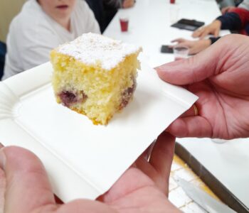 14. 10. 2025 – Ponovno so nas obiskali uporabniki zveze Sožitje in s pomočjo mentoric naredili slastno, rahlo pecivo z višnjami. Hvala za obisk in dobro voljo!