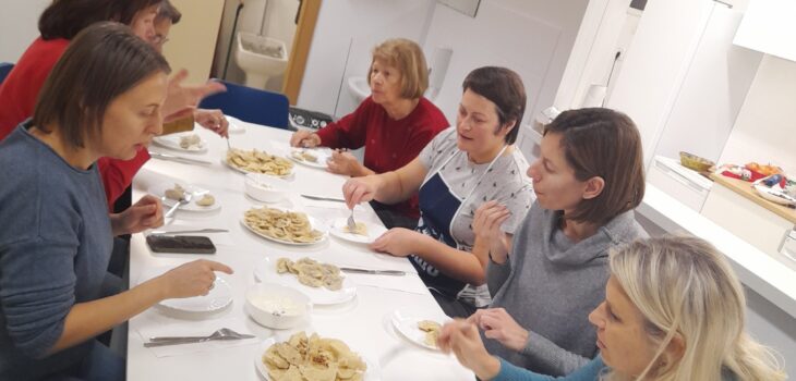 16. 12. 2025 smo imeli zelo zanimivo delavnico ukrainkse kuhinje, na kateri nas je kuharska mojstrica Natalia učila pripravljati ukrainske varenike z mesom, krompirjem in višnjami. Vse tri vrste varenikov so bile zelo okusne.
