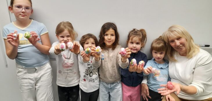 VGC Ustvarjalna delavnica 7. aprila, 20267. aprila, 2026 Na ustvarjalni delavnici 1. 4. 2026 smo krasili stiroporne pirhe z različnimi motivi iz serviet. Otroci so bili navdušeni nad servietno tehniko, nastali pa so sami prelepi in unikatni pirhi in zajčki. Delavnica akvarela s skupino Čopinel Kuharska delavnica Lonček kuhaj