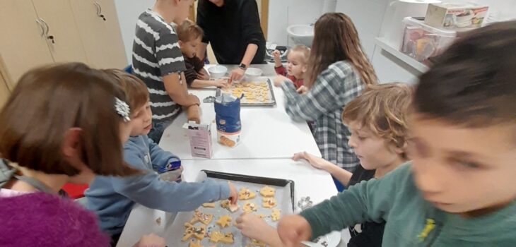 Takole so otroci 23. 12. 2025 neizmerno uživali na ustvarjalni delavnici, ob izdelavi različnih oblik piškotov, njihovi krasitvi, še bolj pa ob peki in sladkanju z njimi. Tako smo na sladek način tudi na ustvarjalni delavnici proslavili začetek počitnic in praznikov.